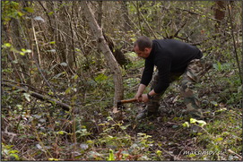 Рукоять замечательно амортизировала удар. После применения бензопилы топор «Тайга-2» был задействован в качестве колуна. Кололись как свежепиленые чурбаки, так и найденные ранее пиленые дубовые, каштановые и буковые полешки. «Тайга», по сути являясь плотницким топором, не предназначена для использования в качестве колуна, поэтому крупные дровяные кряжи я колоть не стал – просто жалко разбивать топорище.