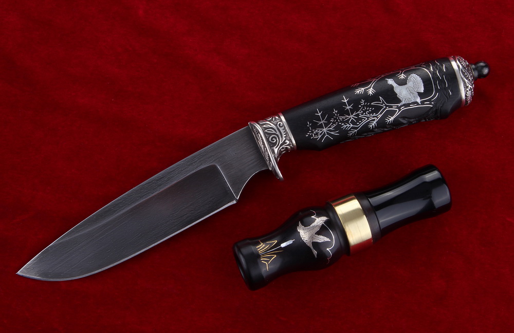 Он делал ножи, добротные охотничьи ножи. По сути, он заложил основу нового направления в декоративной отделке холодного оружия.