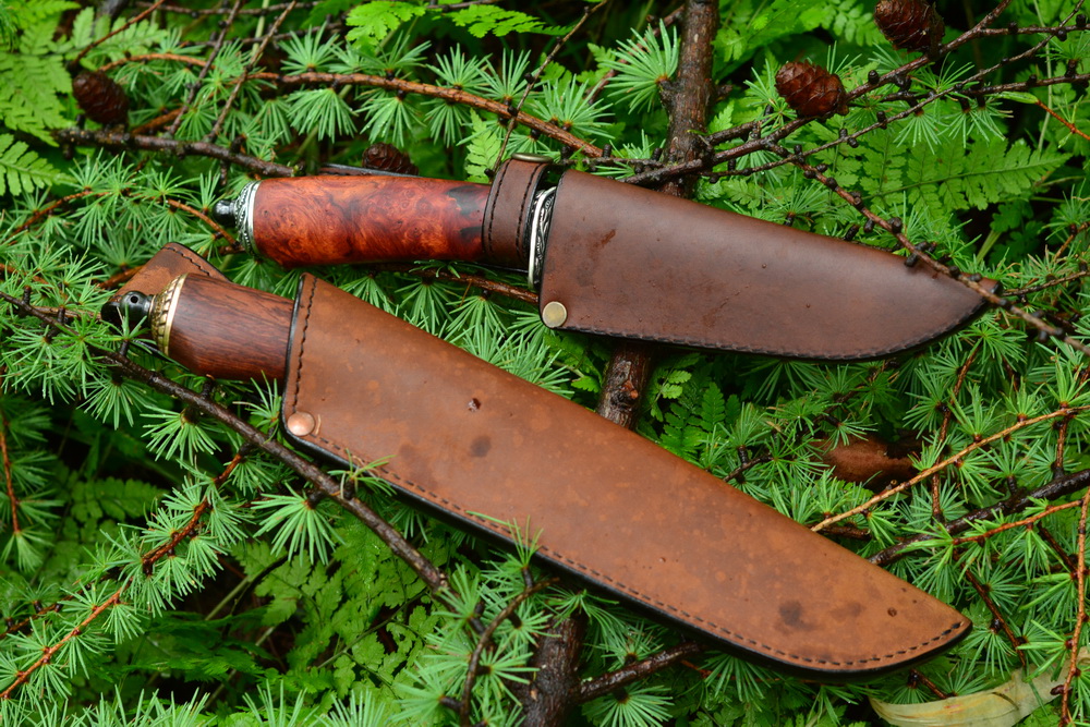 Многие мастера для своих ножей изготавливают великолепного качества оригинальные ножны, в комплекте с которыми ножи высокого класса становятся произведениями искусства.