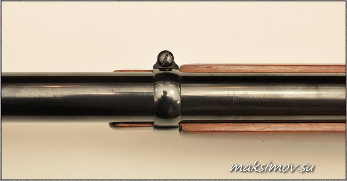 Рукоять затвора имеет срезанный «шарик», при этом получившаяся плоскость гильоширована. Похожее решение мы сегодня можем наблюдать на конверсионных «трёхлинейках» производства завода «Молот».