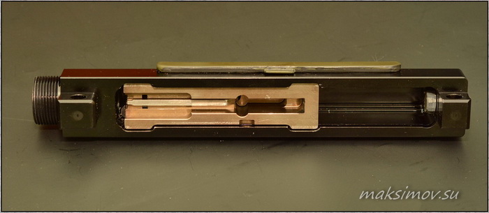 Затвор цельнофрезерованный, выполнен из качественной легированной стали, закалён до 50 единиц по Роквеллу. Чистота обработки безупречная.