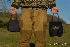 Сделано это не ради красоты или дизайна, а из практических соображений – по замше пластиковые и деревянные приклады лучше скользят при выстреле. Оба мешка имеют приклеенную резиновую «подошву» и петли-ручки для удобства переноски (с учётом немалой массы набитого мешка это совсем нелишне).