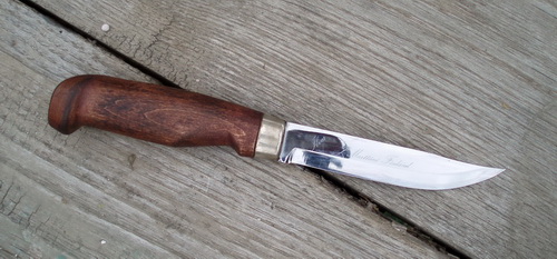 По легенде, кузнец Янне Марттиини, основавший этот завод, и разработал знаменитую модель "рысь", которую вы видите на фотографиях и которая до сих пор считается одной из лучших "финок" и (непонятно почему) высоко ценится у финнов. Ссовременные тенденции сыграли с "Рысью" злую шутку: прощение технологий и унификация производства не пошли ей на пользу, превратив изначально неплохой ножик в дешёвый ширпотреб.