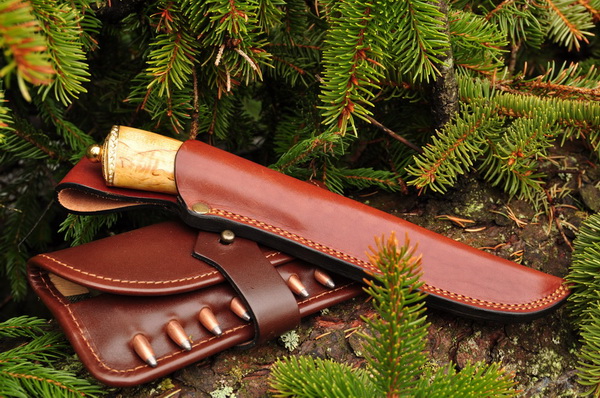 Материалы: карельская береза, фианиты, серебро (позолота, бронза), дамасская сталь, твердость 58-60 HRC.
