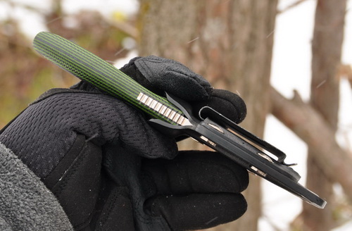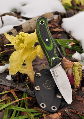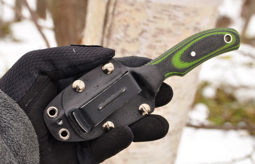 Конструкция ножен - неразборный кайдекс, крепление на пояс при помощи стальной клипсы