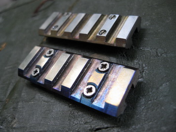 Одним из кронштейнов, отвечающих всем вышеперечисленным требованиям, является титановый кронштейн производства лаборатории ООО "Норд Нукс". Все особенности его конструкции видны на фотографиях, равно как и сравнение с одним из кронштейнов на прицельную планку, предлагаемых на рынке.