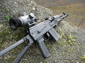 Кучность, на 100 м., при стрельбе отечественными недорогими патронами «Кентавр», более чем приемлемая: 60 мм с открытого прицела и около 45 мм – при стрельбе с брутальным, но довольно удобным и эффективным прицелом «Каштан» с увеличением х2,8. Каких-либо задержек или затруднений при стрельбе не было. Да и какие там могут быть сложности – «Калаш» любому негру в Африке знаком, не то что родившемуся в СССР человеку.