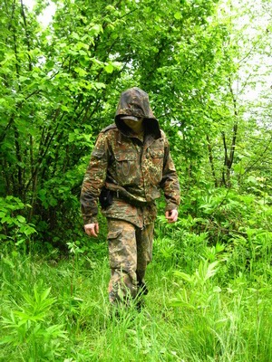Да, но камуфляж в бендесвере был отличного качества! Не могу точно судить о применяемом материале, но это что-то вроде джинсы. Всё сшито крепко, без торчащих ниток. Конструкция костюма продумана до мелочей, Показанный на фото костюм пошит в 1980-х гг., но, несмотря на многочисленныем стирки и довольно плотную эксплуатацию уже после списания из бундесвера, имеет вполне товарный вид и отличную сохранность ткани и швов. Рисунок камуфляжа - традиционный немецкий флектран, обладыющий хорошими маскирующими свойствами.