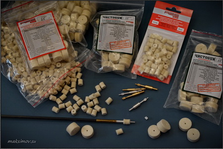 В основной ассортимент этого производителя входят войлочные патчи (войлочные цилиндры с отверстием - готовые калиброванные насадки на иглу шомпола) указанных торговых марок для чистки канала ствола всех видов огнестрельного и пневматического оружия. Патчи изготавливаются из высококачественной шерсти импортного или российского производства, при этом разница в цене по сравнению с иностранными аналогами достигает 3-5 раз. Когда я впервые попробовал прогнать патч ЧИСТОGUN через предварительно вычищенный старыми «народными» средствами ствол моей трёхлинейки, то был удивлён количеством вышедшей грязи. Это неудивительно – срез войлока представляет собой огромное количество торчащих жёстких шерстинок, которые вычищают поля и канала ствола и углы нарезов почти с эффективностью бронзового ерша.