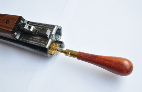 Надо полагать, что манипуляции с чисткой патронника должны проводиться после чистки канала ствола, по сути мало отличаясь от последней. Хлопот может доставить специфика чистки патронников только со стороны казны: «туда» ёршик идёт без проблем, а вот что бы его вытянуть обратно, приходится буквально наизнанку выворачивать спираль латунных ворсинок.