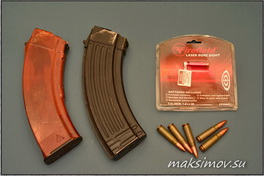Лазерный патрон Firefield кал. 7.62х39 мм конструктивно состоит из латунной «гильзы», в дульце которой встроен лазерный излучатель с лучом красного цвета. Два элемента питания (маленькие «таблетки») закладываются в «патрон» с задней части, инициируя работу лазера. Переключатель «вкл/выкл» в изделиях такого типа отсутствует. После окончания работ с лазерным патроном, элементы питания из него следует извлечь – разряжаются они очень быстро.