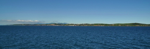 поднимаемся на сопку над портом. В глаза бросаются свежепокрашенные здания с новыми крышами. Корсаков быстро меняется.
