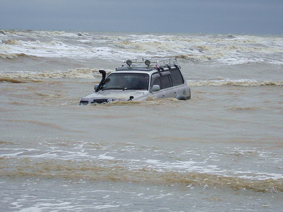 Итуруп. Дорога в аэропорт Буревестник. Ездить по отливу - обычное явление