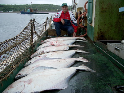 палтус весом в 72 кг! Пойман на острове Итуруп на спининг