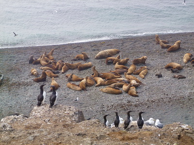 Еще более богат животный мир морей. В водах Японского, Охотского морей и Тихого океана, омывающих острова, обитают котики, самые крупные ластоногие — сивучи, нерпы, встречается до 15 видов китов. У берегов Курильской гряды облюбовал себе место калан, мех которого считается эталоном прочности, красоты и долговечности.