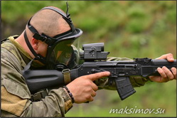 На фото справа: ВПО-136 с ПК1 на позиции. На приклад оружия установлен быстросъёмный гребень ГРУс