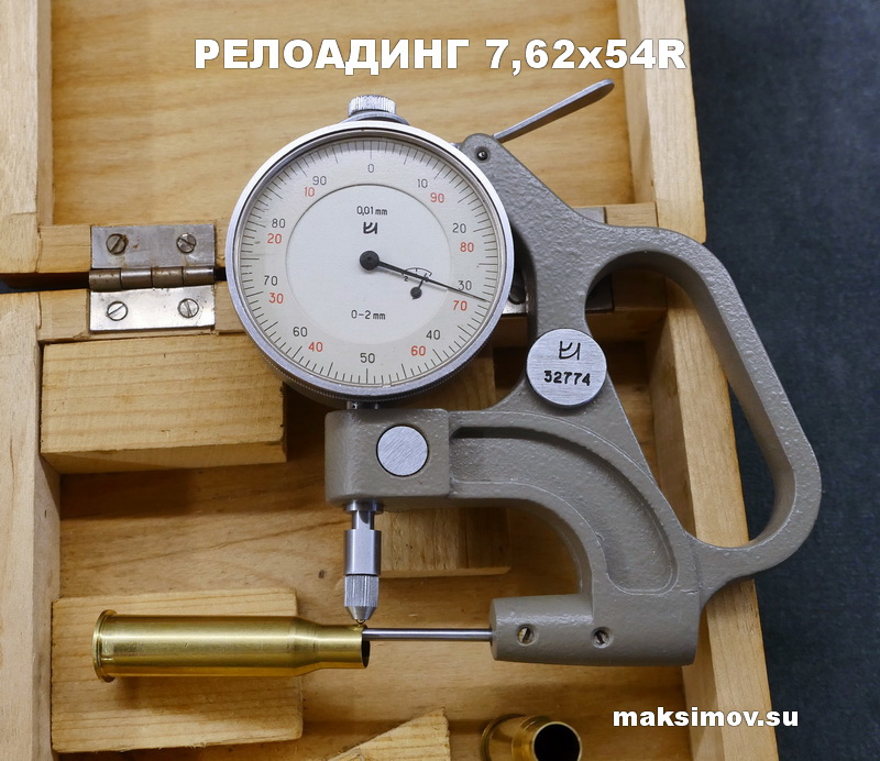 Замер толщины стенки гильзы при помощи советского толщиномера.